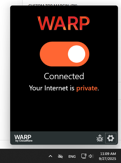 - Mở ứng dụng và bật nút WARP hoặc 1.1.1.1.